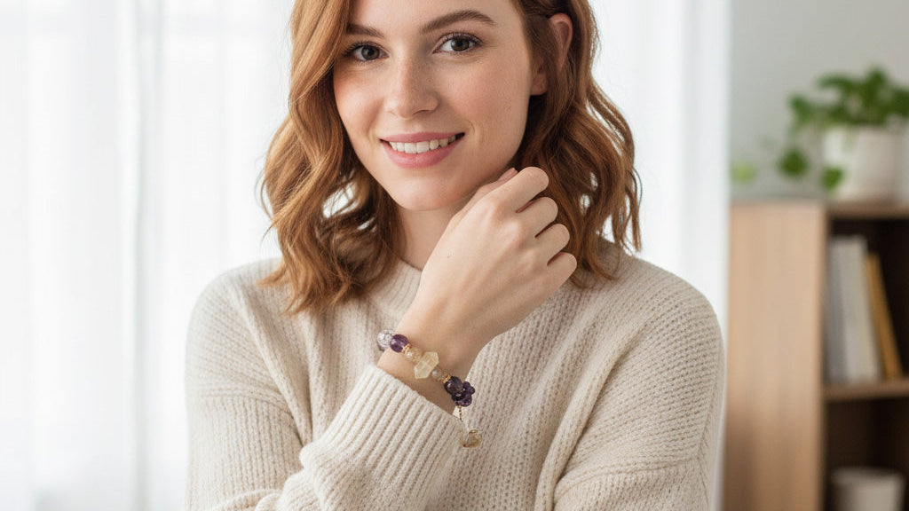 Amethyst Pink Crystal Green Aventurine Rose Inner Peace Healing Anklet